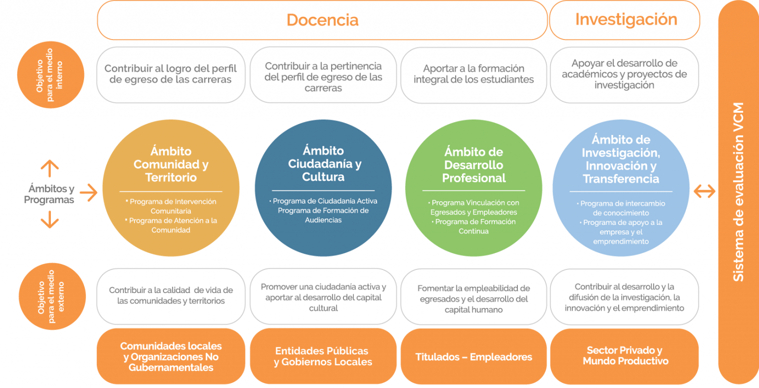 La VcM es una relación sistemática, bidireccional y de aprendizaje mutuo entre la comunidad universitaria y su medio externo relevante, que se funda en los valores institucionales de UDLA: ética profesional, responsabilidad ciudadana y compromiso comunitario.